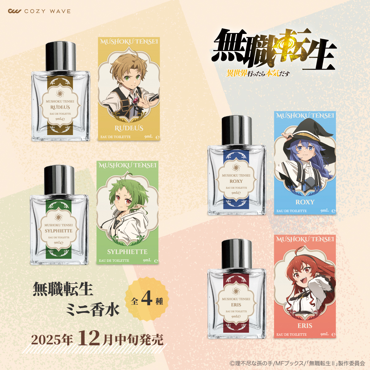 TVアニメ「無職転生 ~異世界行ったら本気だす~」キャラクターイメージ香水(全4種)再販開始!