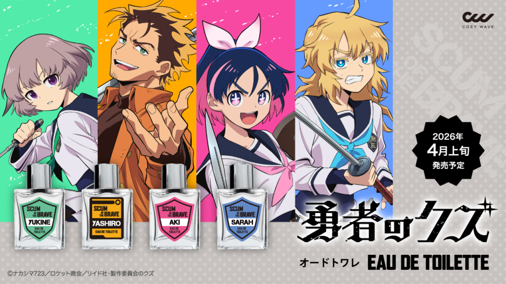 TVアニメ『勇者のクズ』に登場する、「《死神》ヤシロ、城ケ峰亜希、印堂雪音、セーラ・カシワギ・ペンドラゴン」のキャラクターイメージミニ香水全4種を、2026年2月14日(土)より予約販売受付開始します。